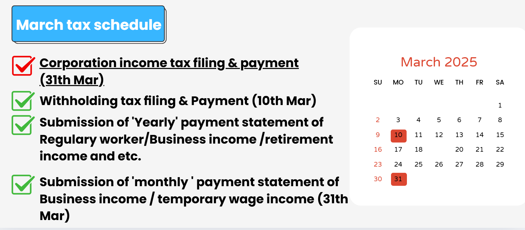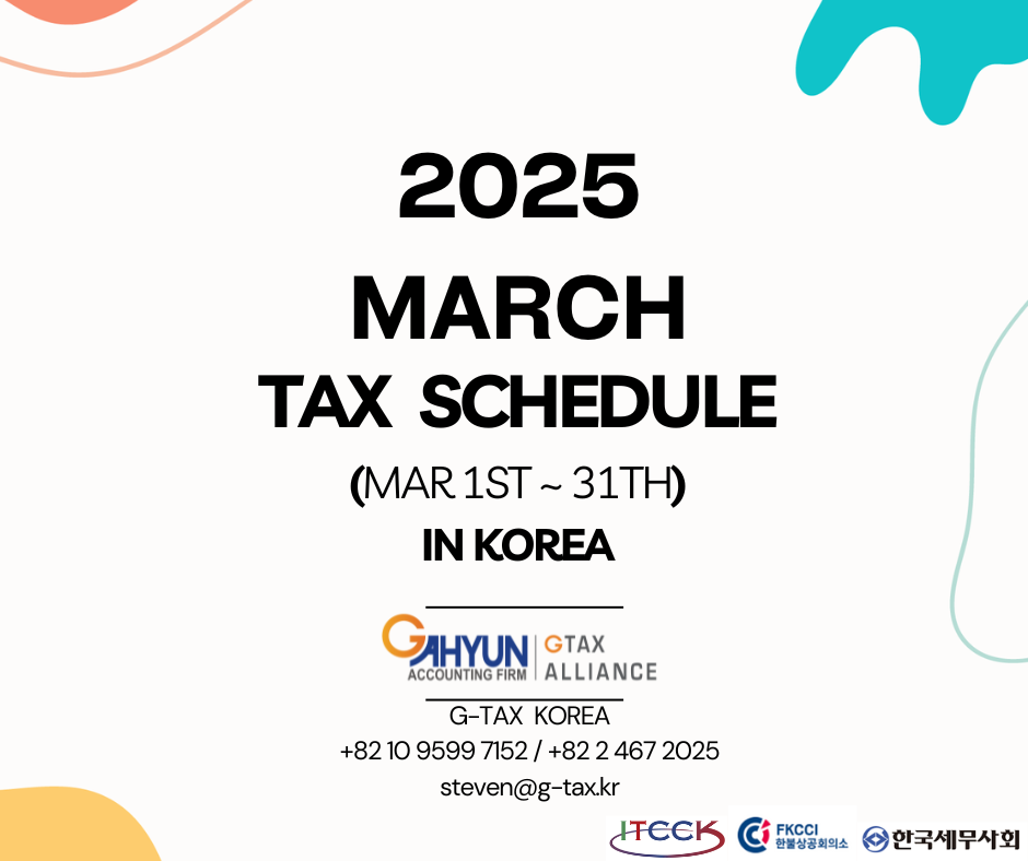 | April 2025 Tax schedule in Korea (0) | 2025.03.31 |