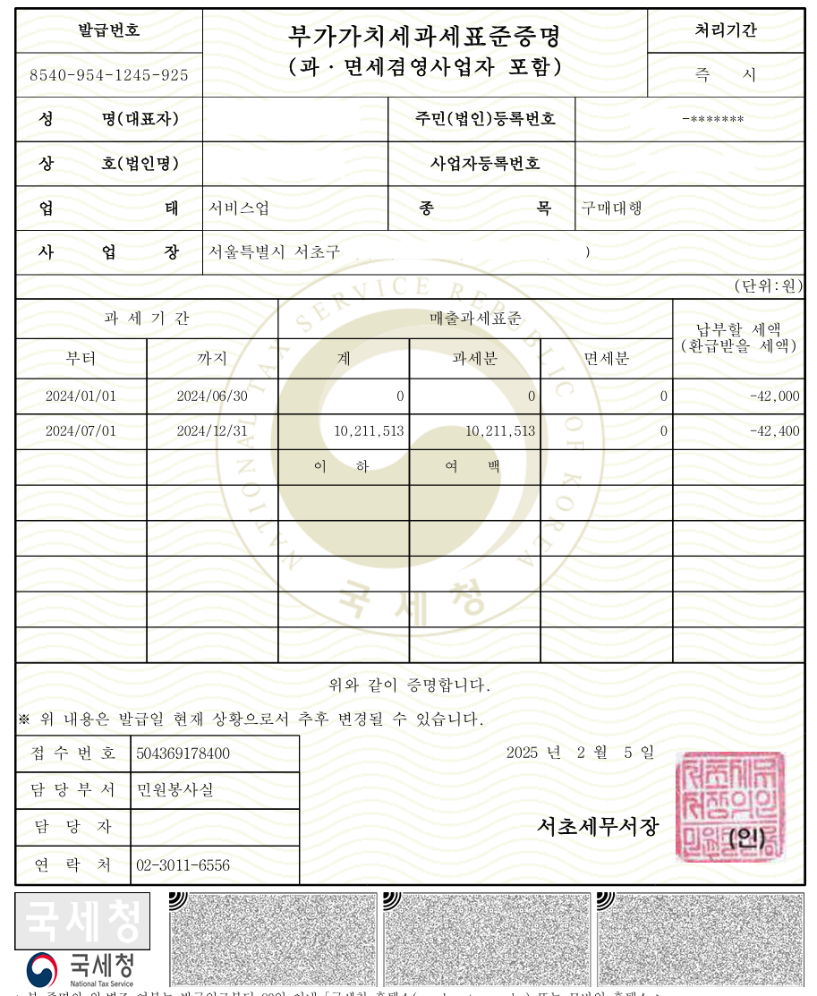 5.부가가치세 과세표준 증명원 Value Added Tax Tax Base Certificate