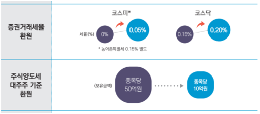 In addition, the standard for defining a major shareholder is being relaxed. This means more shareholders will be liable to pay capital gains tax on share transfers. In Korea, under open market transactions, only major shareholders are required to pay capital gains tax, so this change is significant.