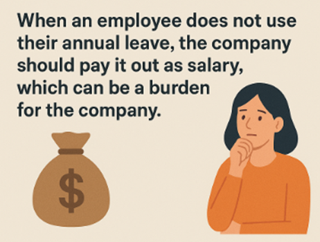 When an employee does not use their annual leave, the company should pay it out as salary, which can be a burden for the company.