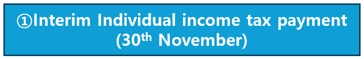 The main tax schedule for November is Interim individual income tax payment.