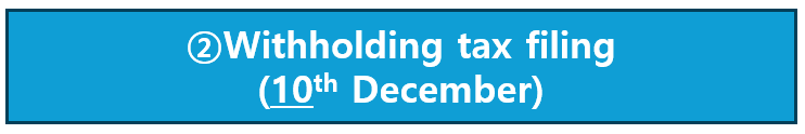 The deadline for filing the withholding tax return is the 10th day of the following month after the payment was made. So, if you paid salaries to your employees in Nov, you must file the withholding tax return by December 10th. (it's usually 10th of following month of the month you paid, but because of the long holiday in this month, it's extended to 15th)