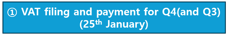 But for corporation, which already filied their 3Q(Jul~Sep) VAT, only have to file for 2Q(Oct~Dec).