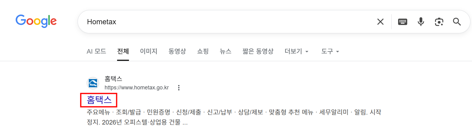 1.Search 'Hometax' and enter the webistes