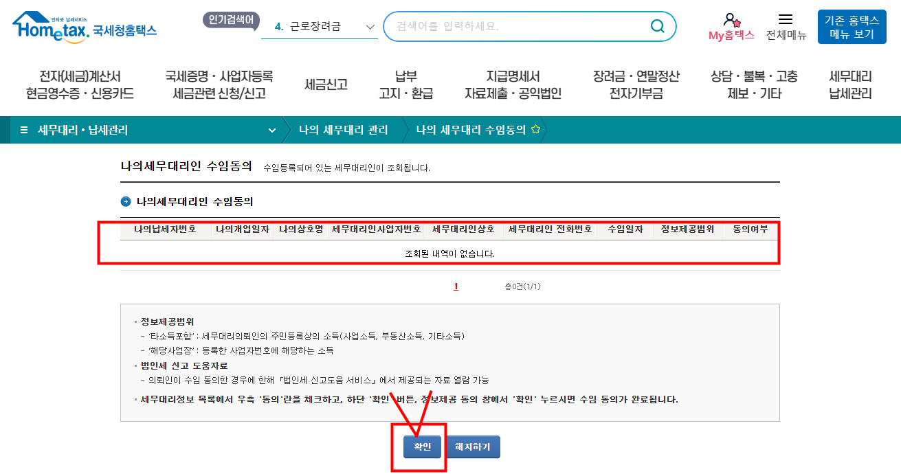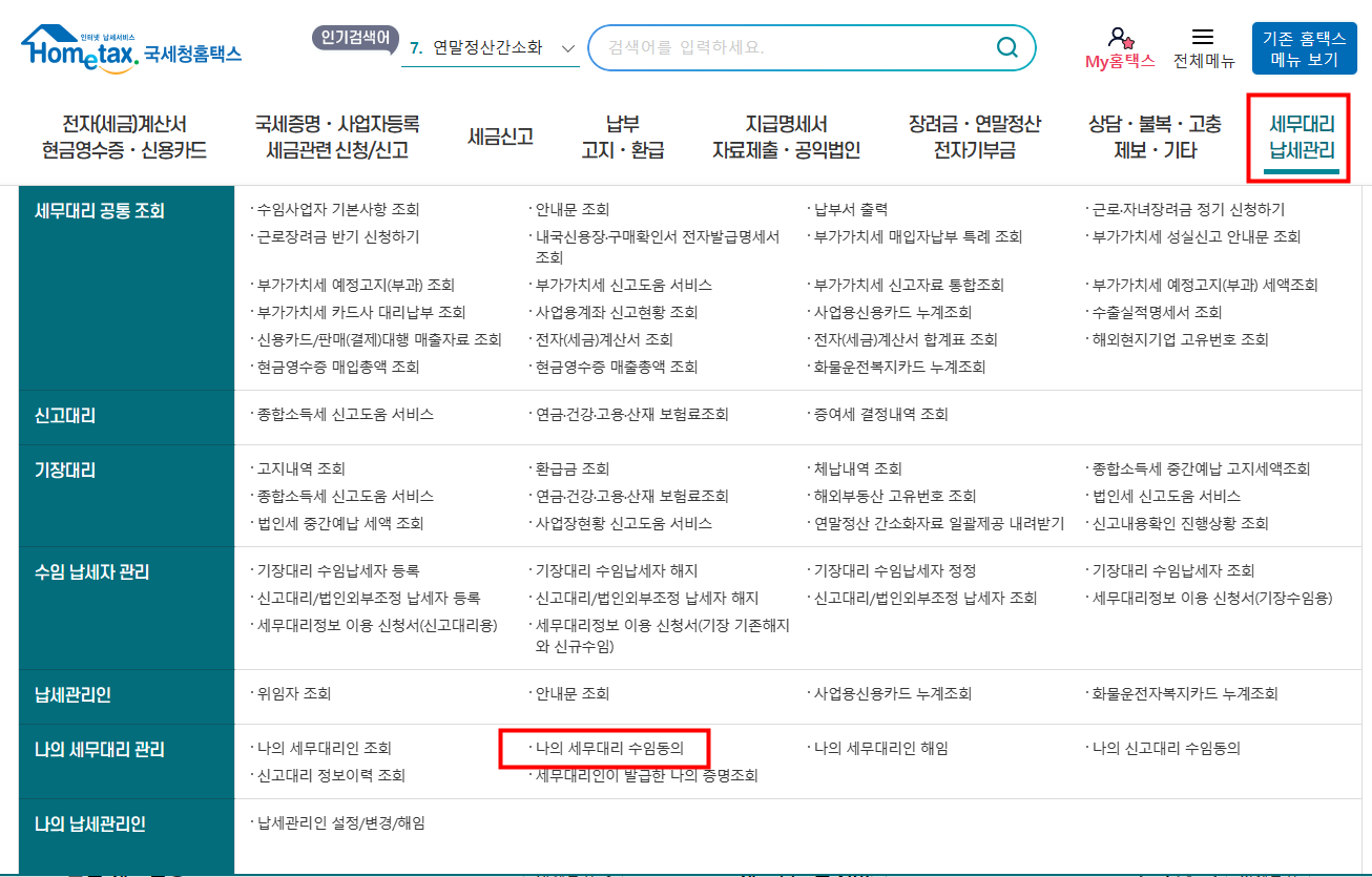 3.Click ‘나의 세무대리수임동의’ in the right side.