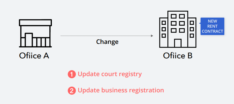 It's important to note that as a corporate entity, your company has a court registry where your business address is recorded. Therefore, when you change your office location, you'll also need to update your court registry accordingly. This process typically requires the assistance of a lawyer or paralegal as it involves legal procedures.