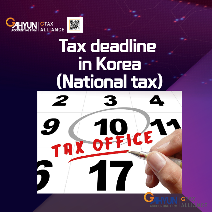 There are quite many kind of taxes in Korea, and every taxes have filing and payment due. you should file tax return and pay taxes by due date. if you fail to meet the deadline, there are penalty. Therefore knowing due date of each taxes are crucial.