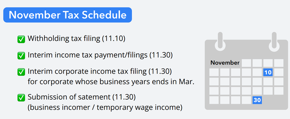 | DecemeberTax schedule in Korea (0) | 2023.11.28 |