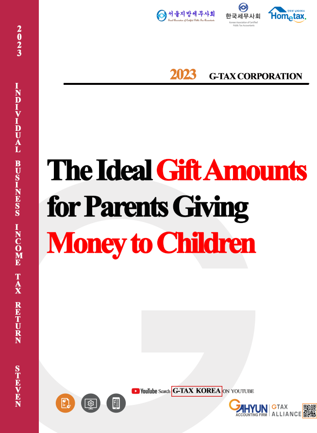 Gift tax rates are set at 10% for giving amounts below 100,000,000 KRW. Therefore, with the basic deduction of 50,000,000 KRW, when you give your children 150,000,000 KRW (approximately 115,000 US$), the taxes amount to only 10,000,000 KRW (7600 US$).