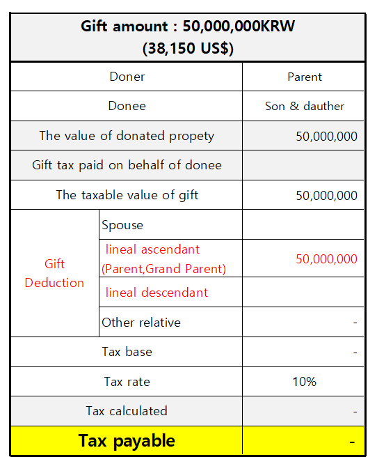 Example1) When parnet give 50,000,000 KRW