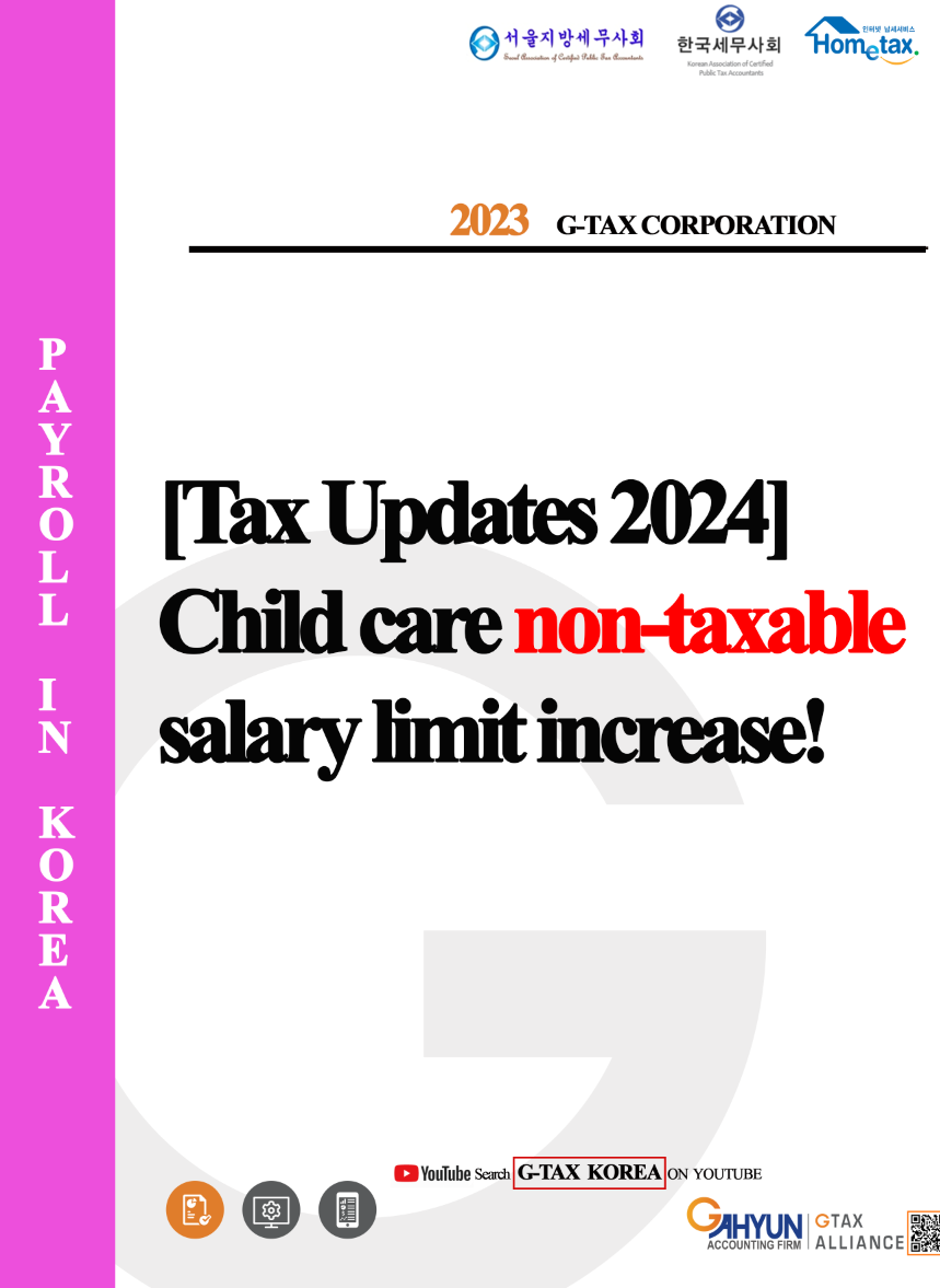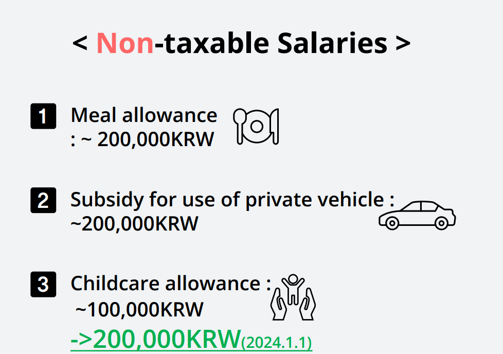 The initial piece of good news is the limit for non-taxable child care allowances will be raised to 200,000KRW per month dobuling from the previous 100,000KRW.