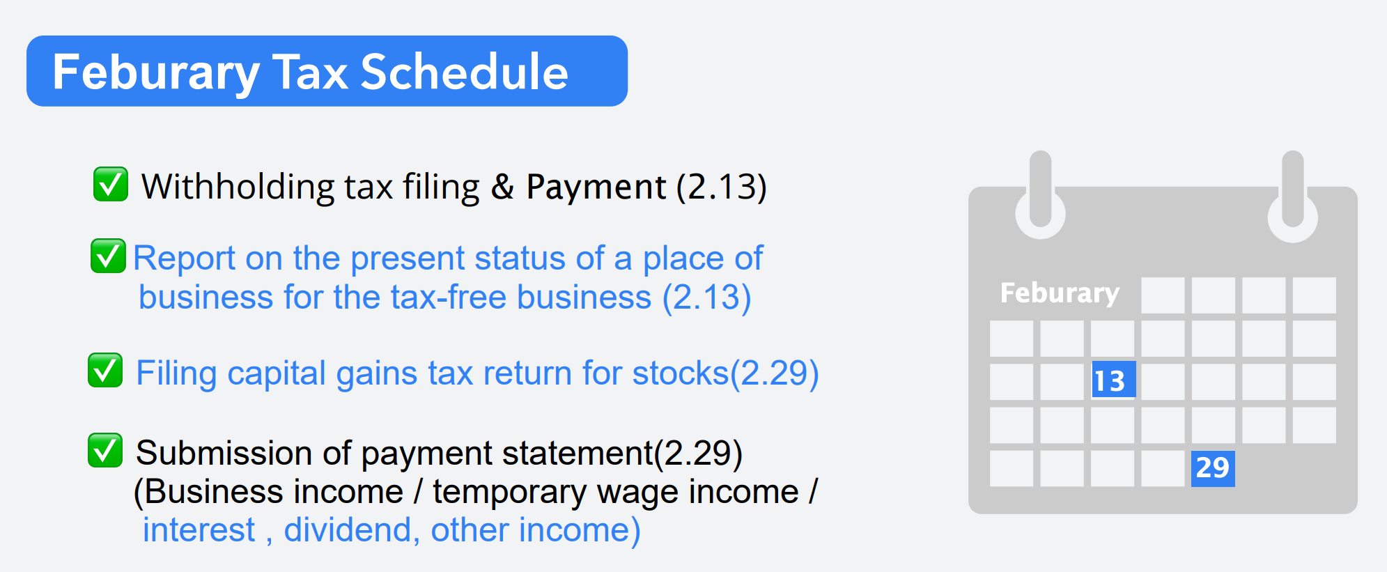 1.Withholding tax filing(~2/13)