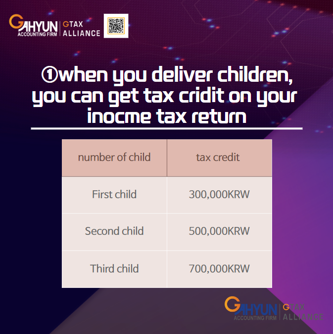 There is tax credit you can get when you give a birth. And the tax credit amounts increase when you deliver a second, a third child.