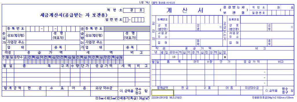 Tax invoices and non-tax invoices look almost the same, except for the word "tax" (세금). Another difference is that non-tax invoices do not have a section for 'tax amounts' (세액) because they are for non-taxable items. Typically, these invoices are issued electronically.