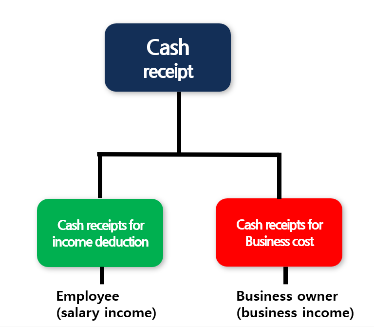 These days, especially in Korea, there are fewer opportunities to use cash because almost everything can be paid for with a credit card. However, if you do pay in cash, you should ask the clerk for a cash receipt for business expenses and provide your business registration number. This distinction is crucial because there are two kinds of cash receipts: