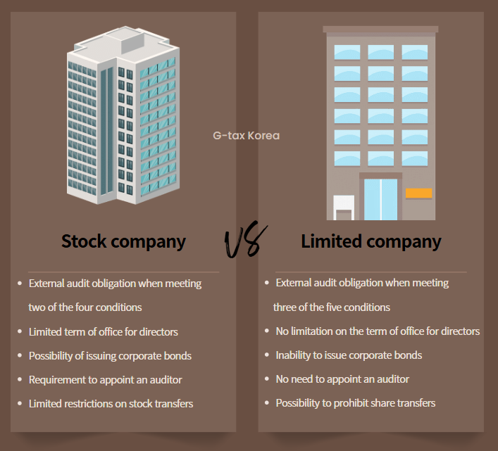 Both Stock Companies and Limited Companies in Korea are required to undergo external audits, but the criteria for triggering these audits differ slightly between the two.