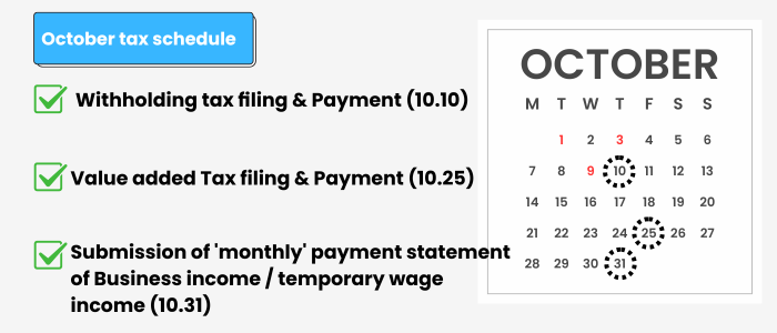 | November Tax schedule in Korea (1) | 2024.11.01 |