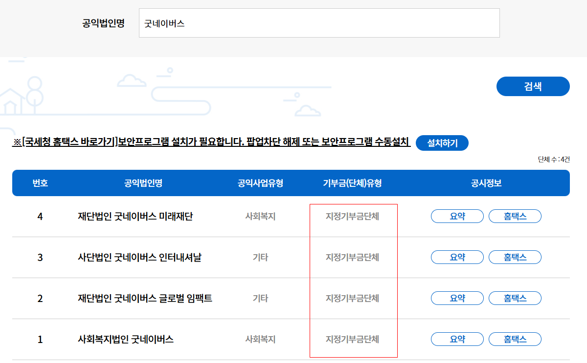 And found out that the 굿네이버스 is qualified donation organization(지정기부금단체)