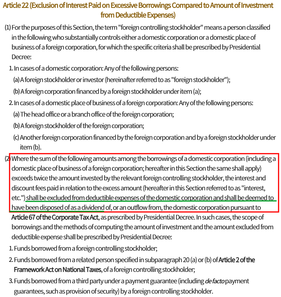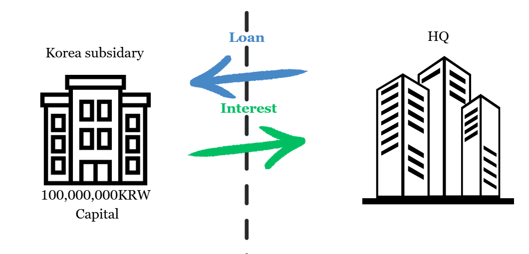 The interest paid by the Korean subsidiary is treated as an expense for the subsidiary and income for HQ. What I want to highlight today is how this interest expense can sometimes face limitations.