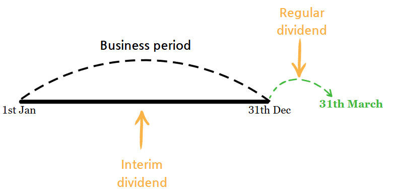 A regular dividend typically occurs within three months after the end of the business period. For example, if the business period runs from January 1st to December 31st, the corporation should pay dividends by March 31st of the following year.