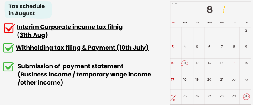 Aug 2025 Tax schedule in Korea
