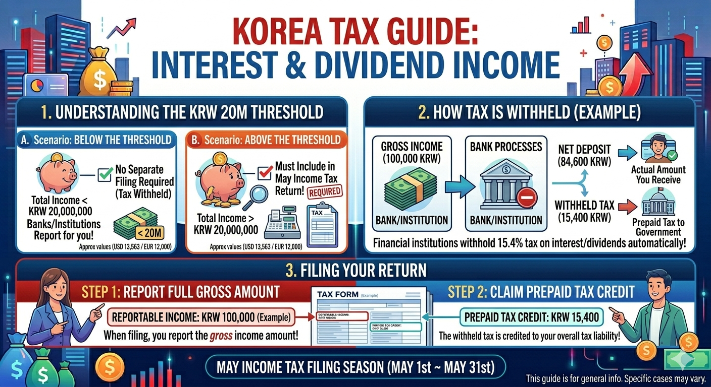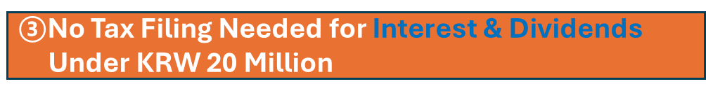 However, if your total interest and dividend income exceeds KRW 20,000,000, you are required to include it in your income tax return.