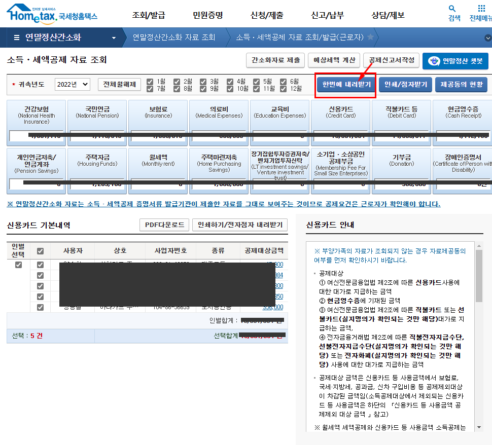 *The above interface is temporary interface. So you might see below interface. please find the '조회/발급 -> 연말정산간소화' in the left below.