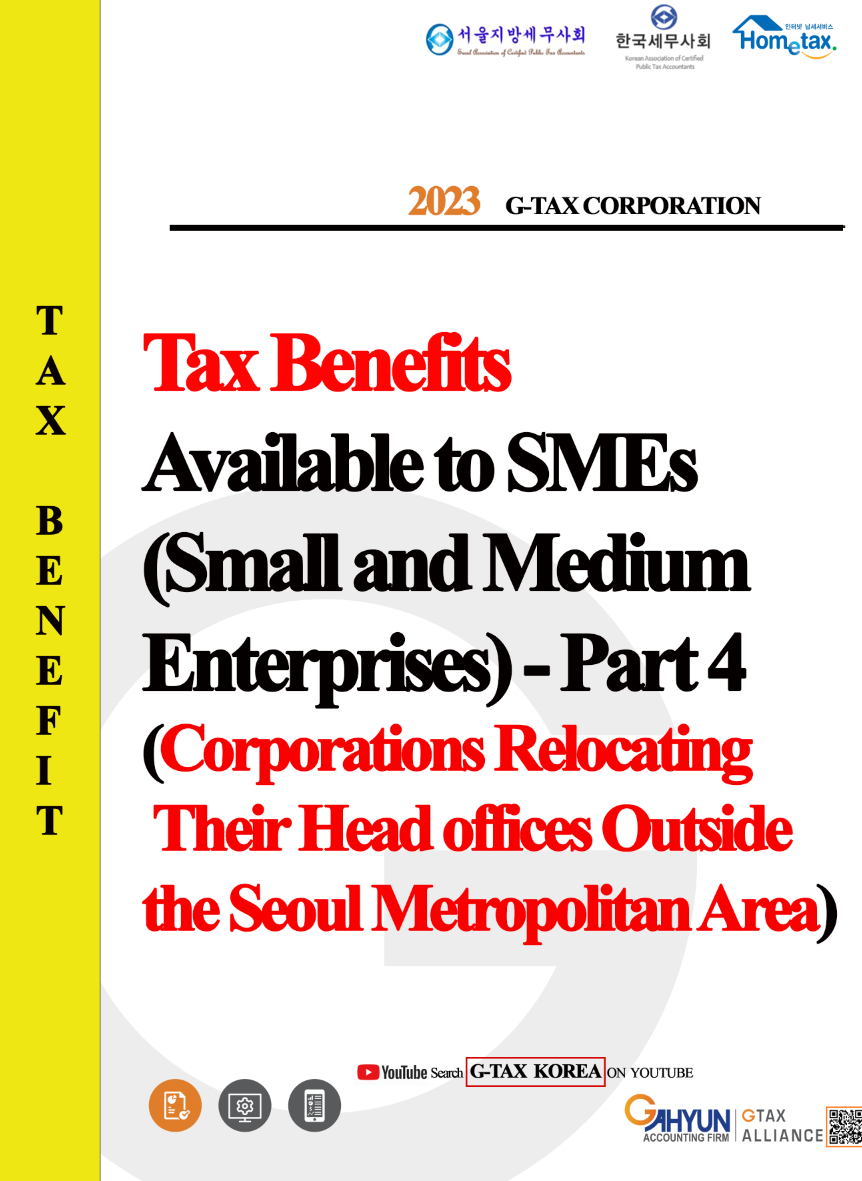 [Tax benefit]Tax Benefits Available to SMEs (Small and Medium Enterprises) - Part 4 (Tax Benefit for Corporations Relocating Their Head offices Outside the Seoul Metropolitan Area )